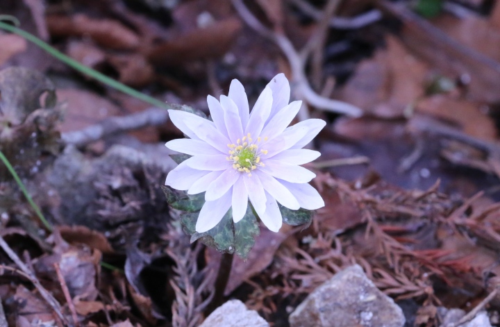 ユキワリイチゲはその名の通り積もった雪の中から出てきて小さくて