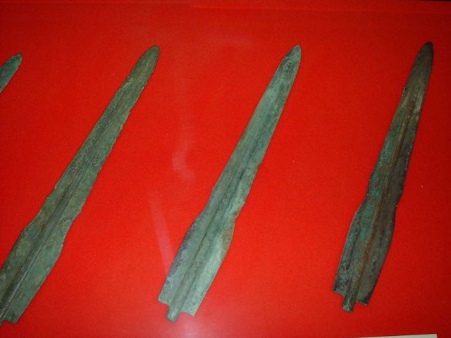銅剣 両刃で中央に鎬(しのぎ)、その両側に樋(ひ)があり柄をつけるように