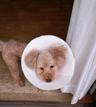 舐めると良くないと画像の「エリザベスカラー」をされた。