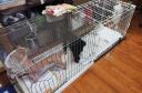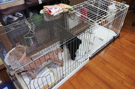 犬たちのオシッコ対策に新しくゲージを買って古い物と繋いで広くしてやった。
