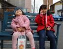 店の前で待ちくたびれている二人だ。