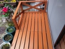 午前中デッキと同じ色で踏み台と鉢を乗せる台の色塗りをして午後に画像のペンキを買ってきた。