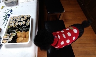 今夜は従兄の家で海苔巻きパーティー。久し振りに一緒に夕食です。