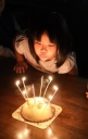 画像はケーキとロウソクを消す実月。おねえちゃんになった。