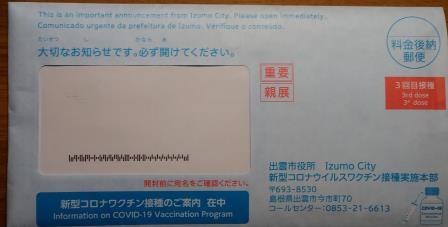 3回目のワクチンは以前接種した病院にお願いしてあるがまだ接種券が届かない。