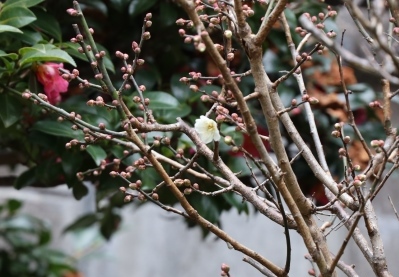 つぼみが沢山あるので寒さが緩むとすぐ満開になるだろう。