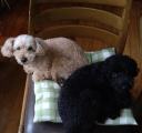 久し振りの「ふく」と「そら」、相変らずこの椅子でくっついている。