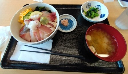 ごいせ仁摩では私は画像の「海鮮丼」あっこさんは「大あなご丼」を食べお腹一杯に。